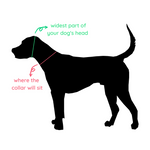 Please indicate your colour choice in the SPECIAL INSTRUCTIONS in your cart. Also please write a) your pup's neck measurement & b) the widest part of their head (in inches) - see below for our measuring guide.
